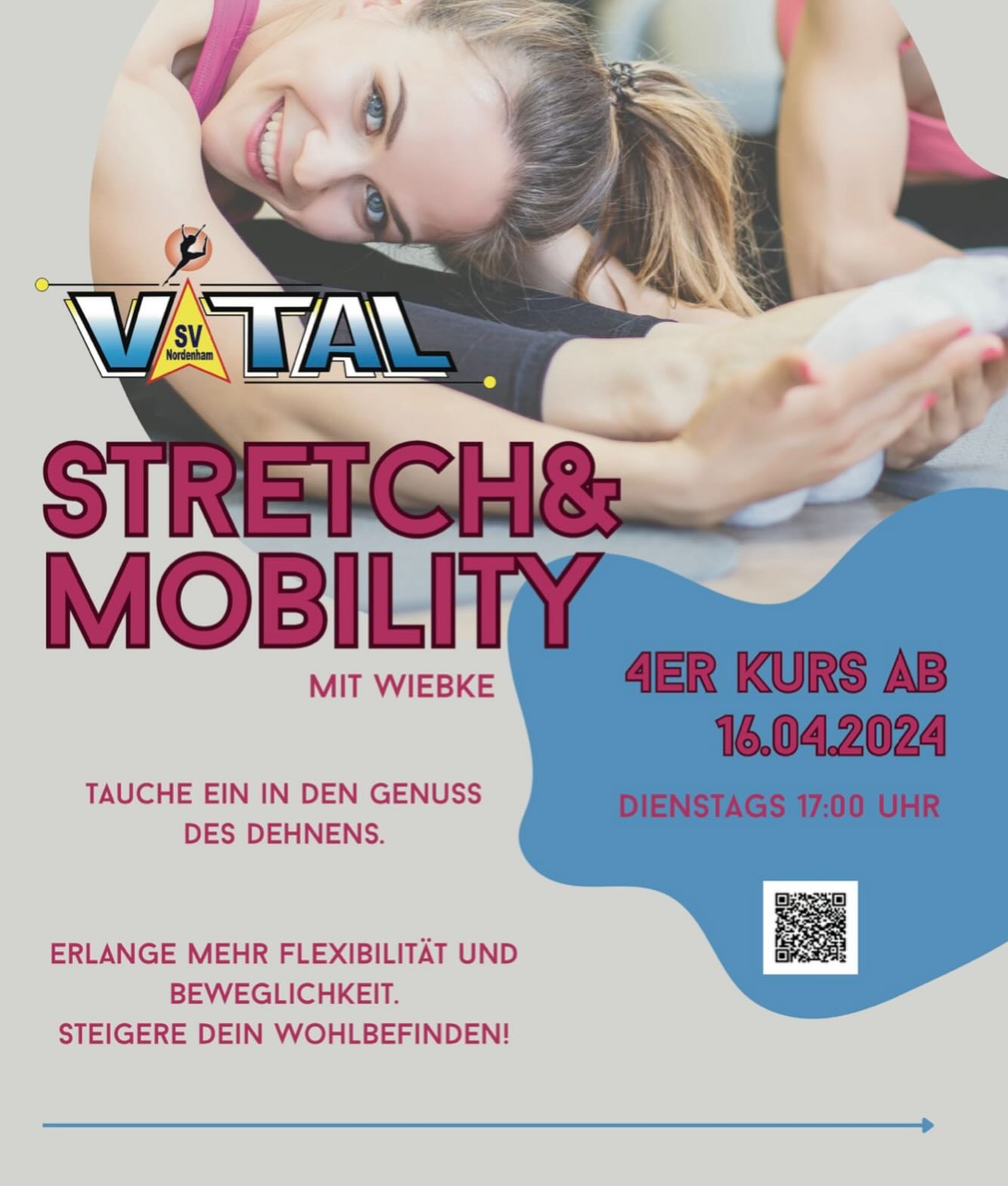 Ab dem 16.04.2024 geht es los und wir starten mit unserem neuen Kurs „Stretch und Mobility“. 🤸🏼